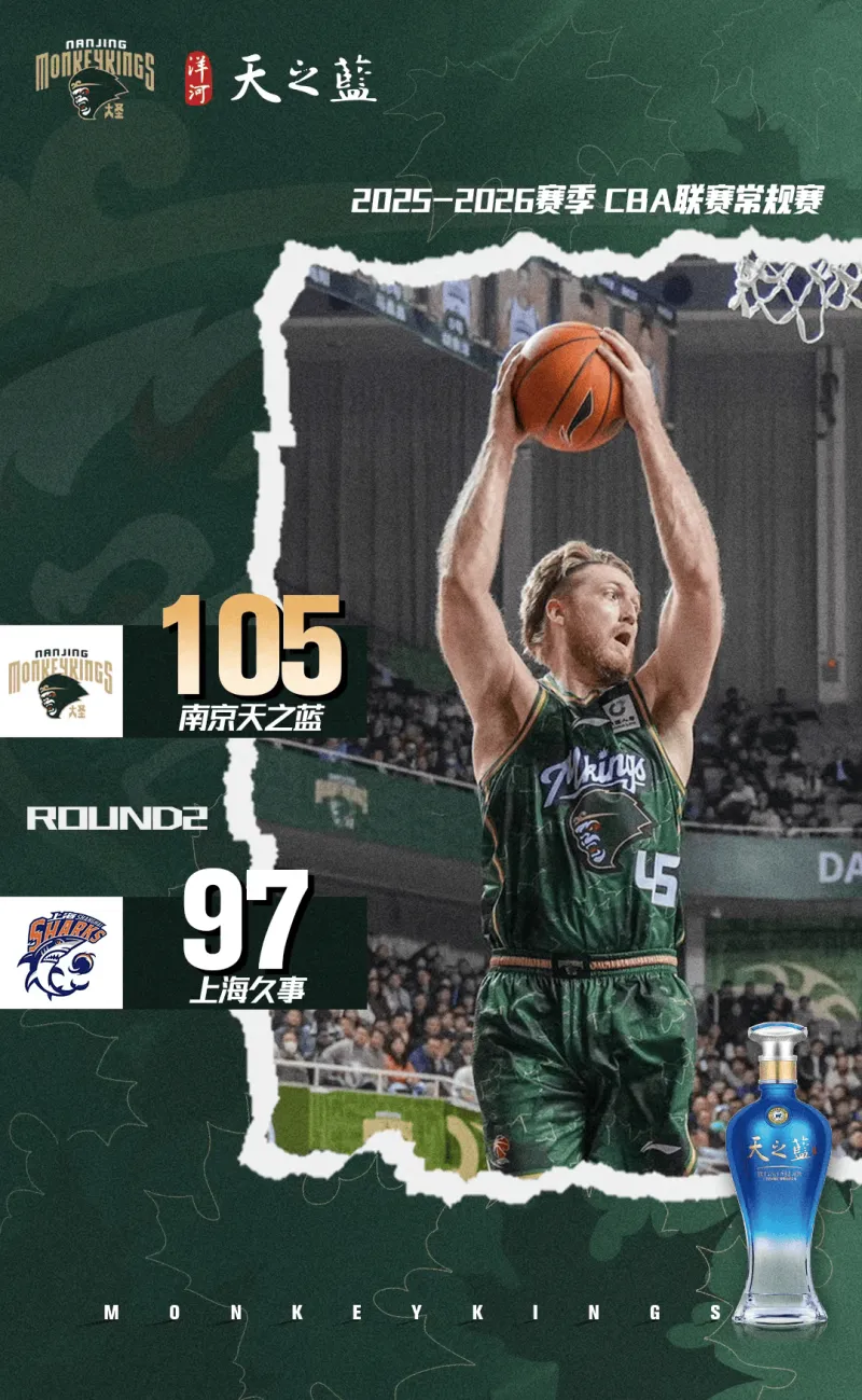 虎撲12月17日訊 CBA常規(guī)賽,南京105-97戰(zhàn)勝上海。